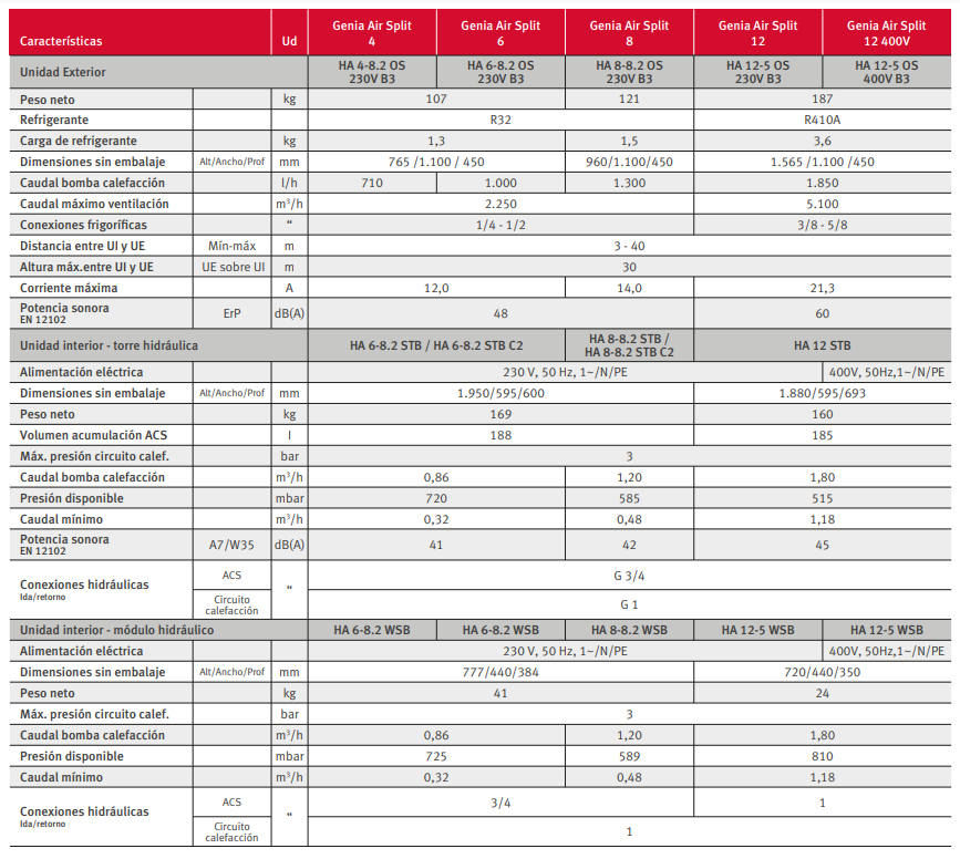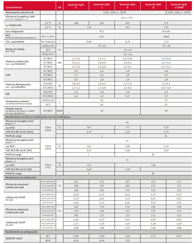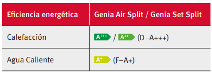 Genia Split 4 alcanza también la máxima calificación energética en ACS: A+(Rango A+-F).