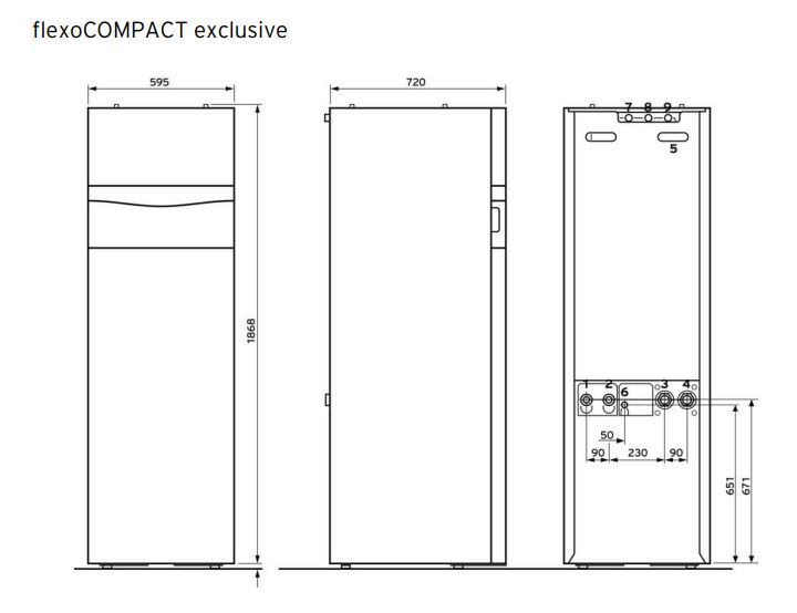 La gama flexoCOMPACT exclusive añade a los componentes de la gama flexoTHERM exclusive, un sistema de producción y acumulación de ACS mediante un depósito interacumulador que facilita el diseño de un sistema completo con un único mueble que incluye también todo lo necesario para configurar un sistema completo para calefacción, refrigeración y agua caliente, además de los componentes específicos para la producción de agua caliente.