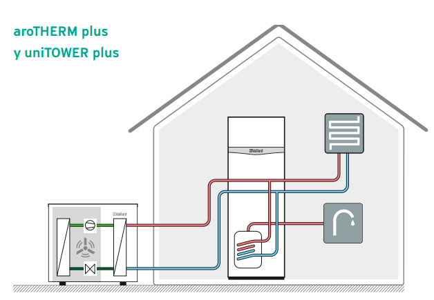 La instalación funciona igual que la instalación de aroTHERM y no requiere certificación de refrigerante. aroTHERM plus puede colocarse en el suelo, en la pared o en una cubierta.