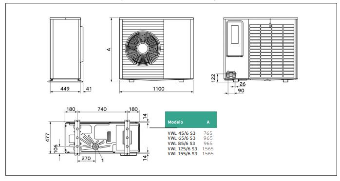 DIMENSIONES UNIDAD EXTERIOR : Alt/Ancho/Prof mm: 1.565/1.100/450