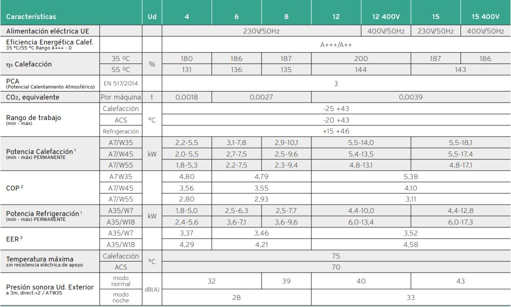 Gracias a su alta eficiencia. SCOP hasta 5,38 (Clima Cálido s/EN14825)