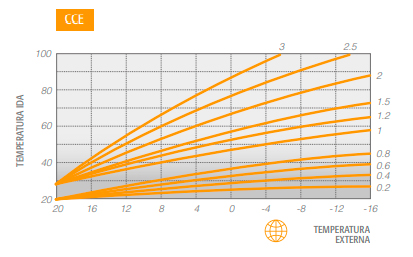 Con la lectura de la temperatura externa directamente desde Internet (o desde la sonda externa opcional) el sistema está en disposición de variar la temperatura ida a calefacción en función de la temperatura externa medida sobre la base de curvas climáticas configurables, garantizando así al usuario el máximo confort ambiente al variar las condiciones climáticas externas.