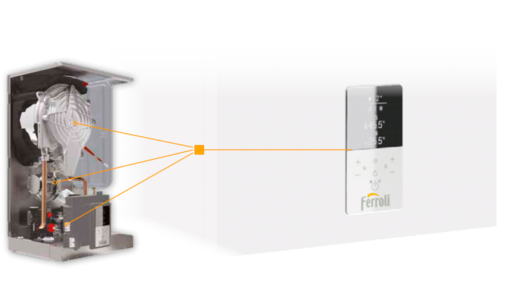 La función modulante de CONNECT permite modular la potencia de la caldera a medida que se alcanza el valor de la temperatura ambiente configurado. Esto mejora la calidad del confort eliminando los picos de calor, con un consiguiente ahorro energético.