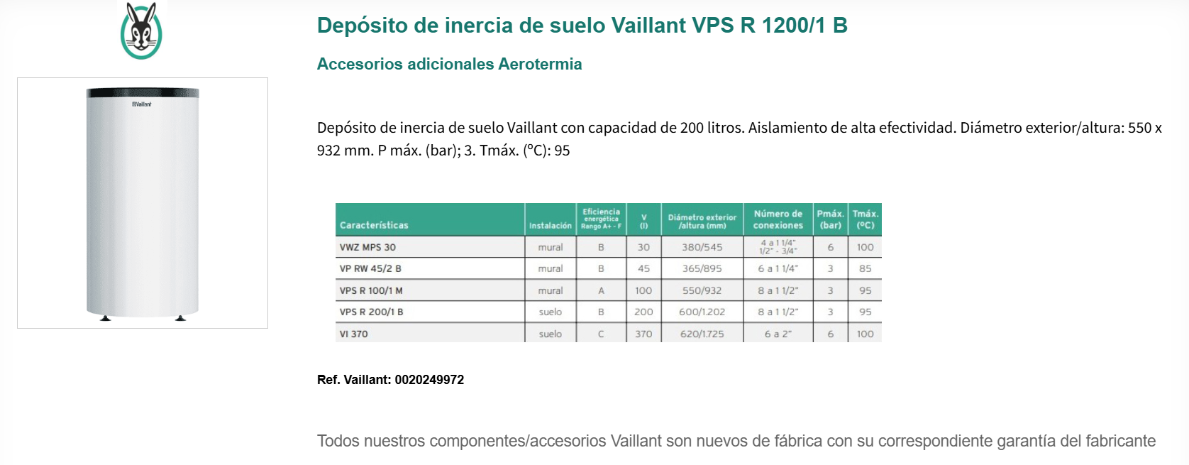 Depósito de inercia Vaillant VP RW 45/2 B | Accesorios Aerotermia