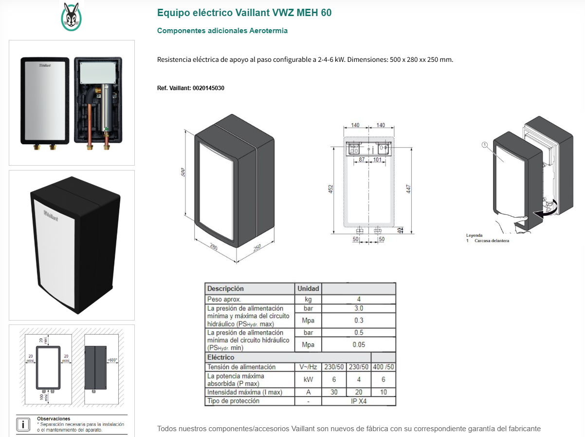 Resistencia eléctrica de apoyo al paso configurable a 2-4-6 kW.
