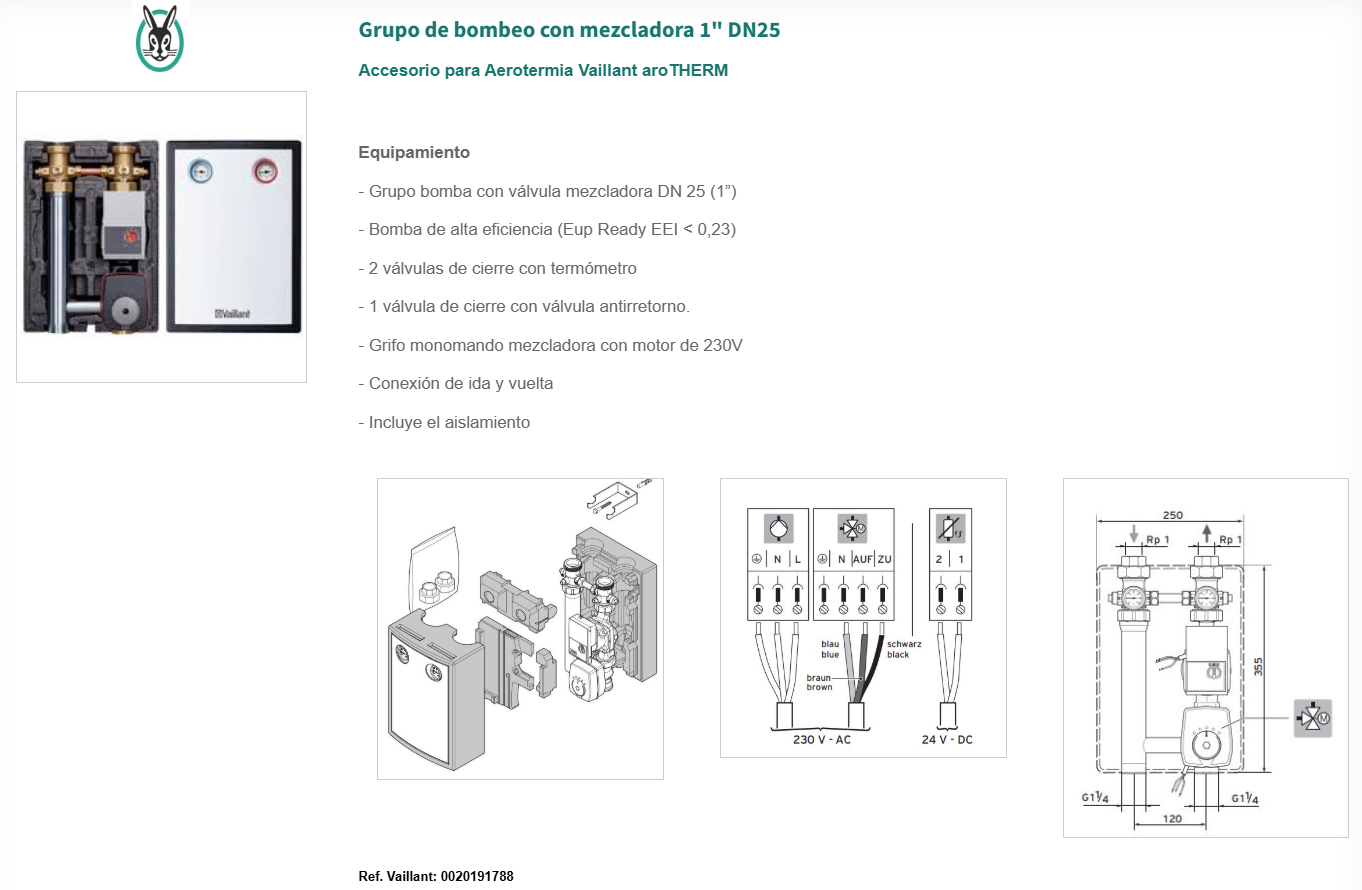 Grupo de bombeo sin mezcladora 1" DN25 | Aerotermia Vaillant