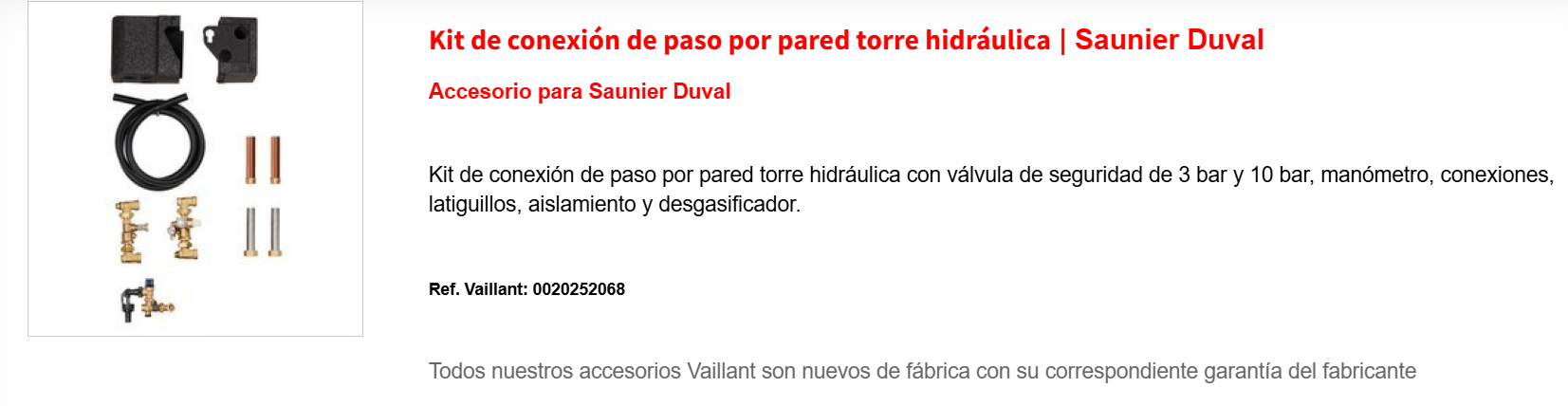 Kit de conexión sobre pared torre hidráulica| Saunier Duval
