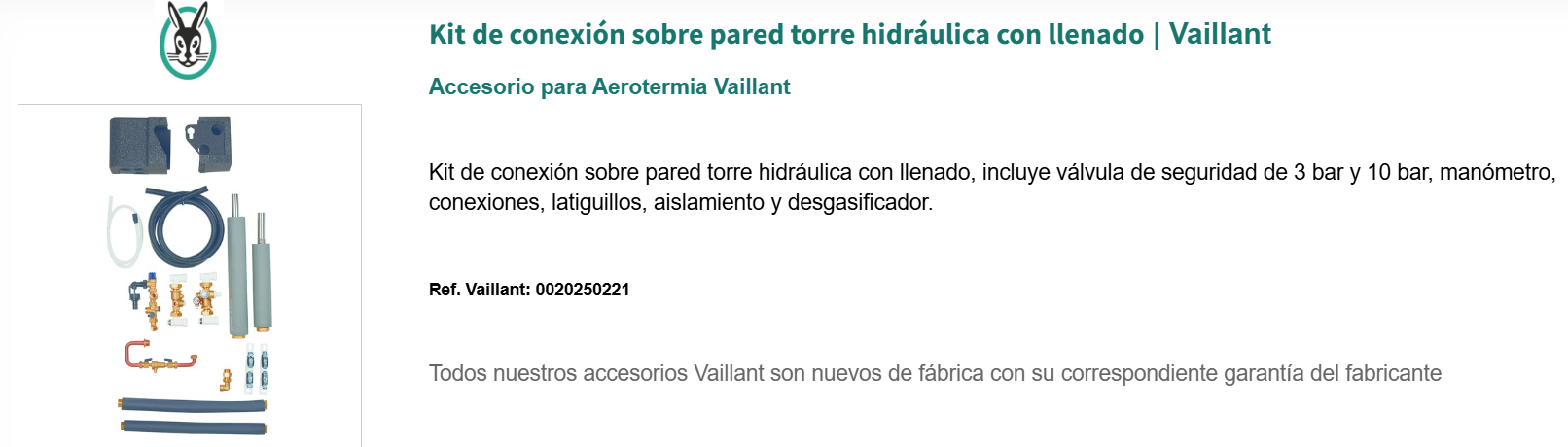 Kit de conexión sobre pared torre hidráulica| Aerotermia Vaillant