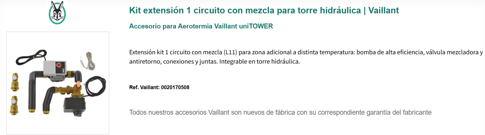 Kit extensión 1 circuito sin mezcla para torre hidráulica uniTOWER | Aerotermia Vaillant
