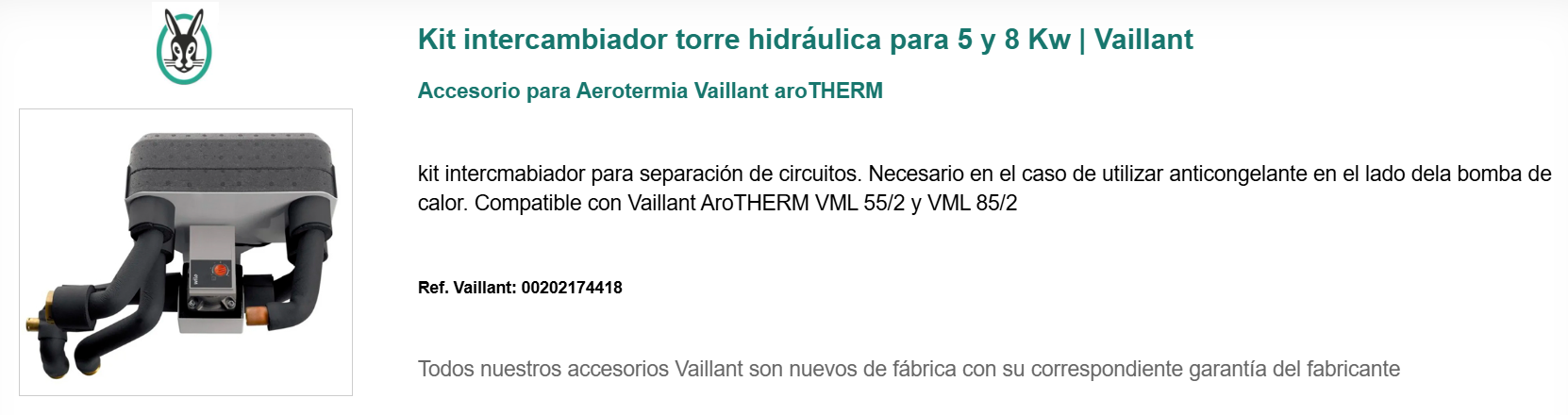 Kit intercambiador torre hidráulica para 11 y 15 Kw | Vaillant