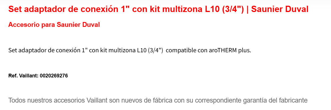 Set Set adaptador de conexión 1″ con kit multizona L10 (3/4″) compatible con AroTHERM plus